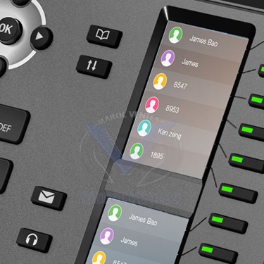 Téléphone IP X6 avec Couleur LCD 4.3" avec une clé intelligente DSS-cartographie LCD pour le marché de l'entreprise. X6 est livré avec des fonctionnalités d'entreprise complets et l'interopérabilité avec les principales plates-formes, comme Asterisk, Broadsoft, 3CX, Elastix, etc.Le DSS-clé cartographie LCD est conçu avec intelligence pour soutenir l'utilisation dynamique de remplacer les modules d'extension. Il y a 12 touches DSS correspondent à l'écran LCD de fournir ligne dynamique / DSS / BLF fonctions jusqu'à cinq pages à 60 touches DSS totales virtualisés. L'utilisateur peut configurer / personnaliser chaque touche DSS dans chaque page. Chaque touche DSS a une indication LED de couleurs vert, rouge, et jaune pour refléter l'état de la touche. Il ya aussi un bouton DSS de notification d'événement pour avertir l'utilisateur chaque fois qu'il ya un événement dans un autre page (s). Un bouton page de raccourci est également conçu pour permettre à l'utilisateur de basculer rapidement entre les pages. X5 est le choix le plus économique de bureaux de PME et grandes entreprises superviseurs. (Optionelle)