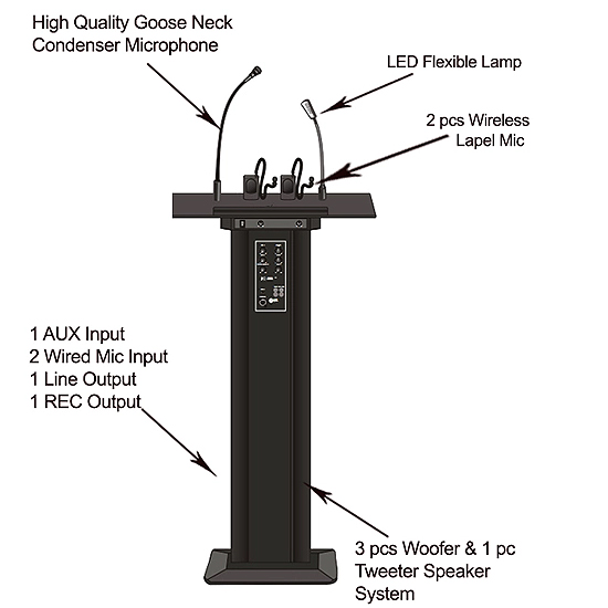 LE PUPITRE DE CONFERENCE AVEC HAUT PARLEUR INTEGRE