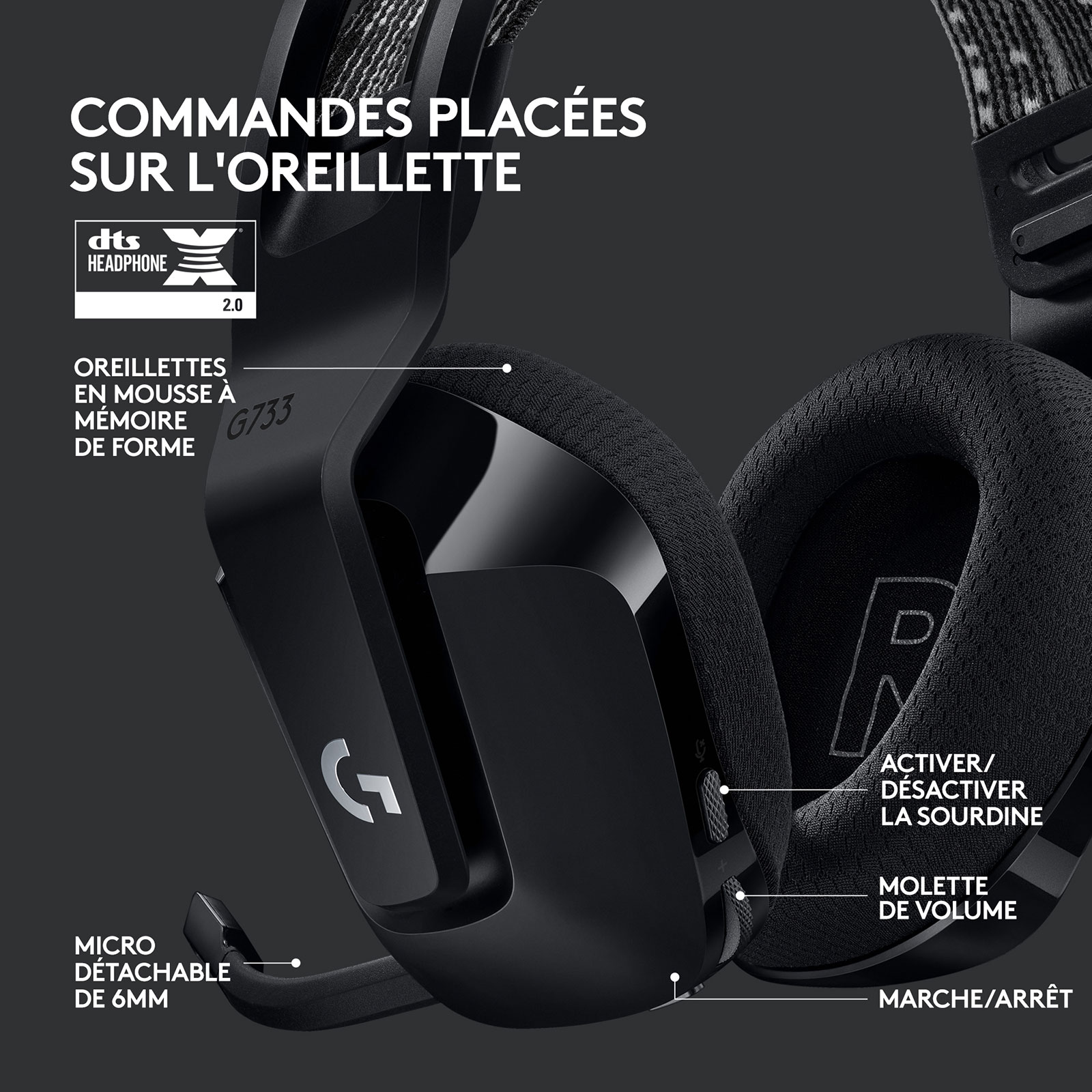 Logitech 981-000864 - CASQUE G733 LIGHTSPEED SANS FIL RGB Gaming BLACK