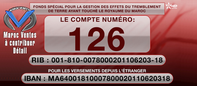 Contribuer aux victimes du séisme - Maroc Vente est fière d'avoire contribuer.Fonds spécial N° 126