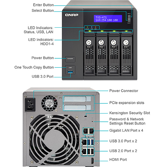 Le TVS-471 intègre 4 ports Gigabit Ethernet et prend en charge les réseaux haut