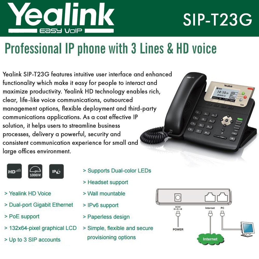 - Téléphone IP Yealink SIP-T23G